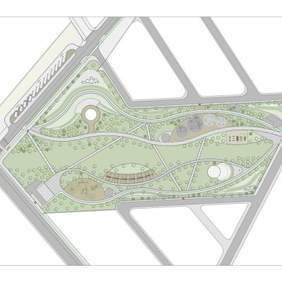 La acestea se adaugă două foișoare de relaxare, o zonă de joacă pentru animale de companie, alei pietonale, cișmele, toalete, locuri de parcare, adăposturi cu suporturi pentru biciclete și mobilier urban.